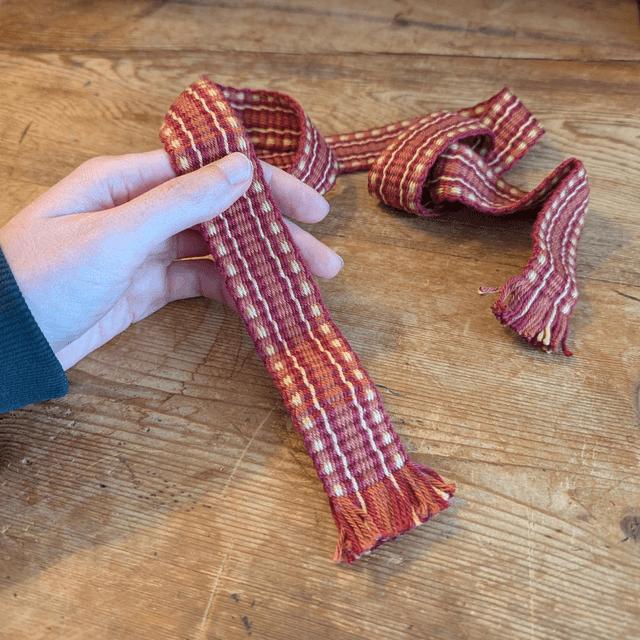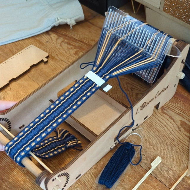 Le kit "Galon à tisser" comprend les fils et instructions pour réaliser un galon tissé d'environ 1m.