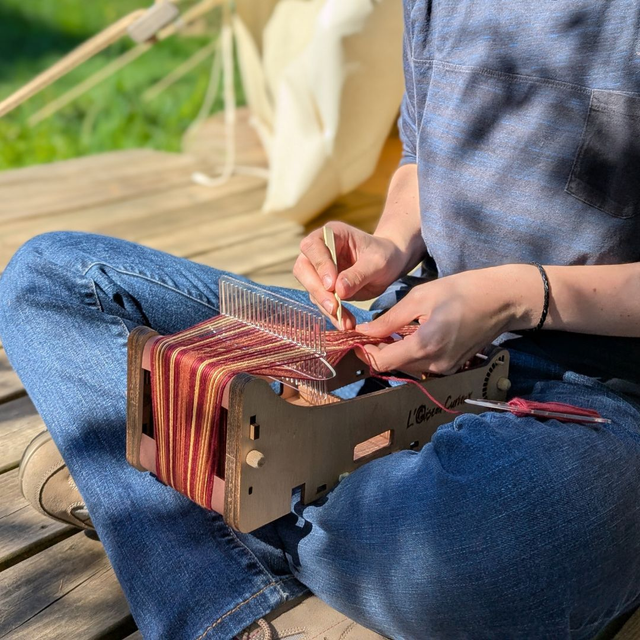 Le kit " Métier à tisser et ses accessoires" comprend le matériel de base pour explorer le tissage de galons au peigne d'encroix :